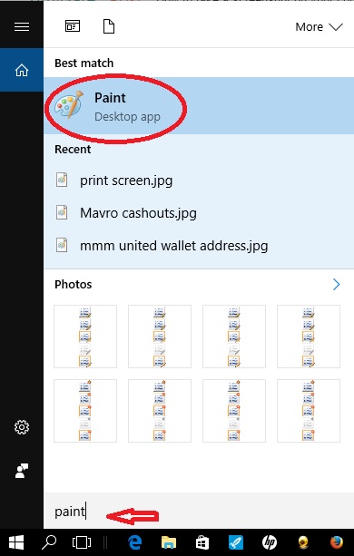 >>Open paint. To do this click on search and type in “paint”and hit the enter key