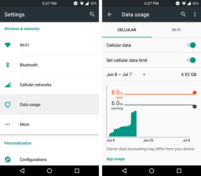 >> Click on data and storage usage