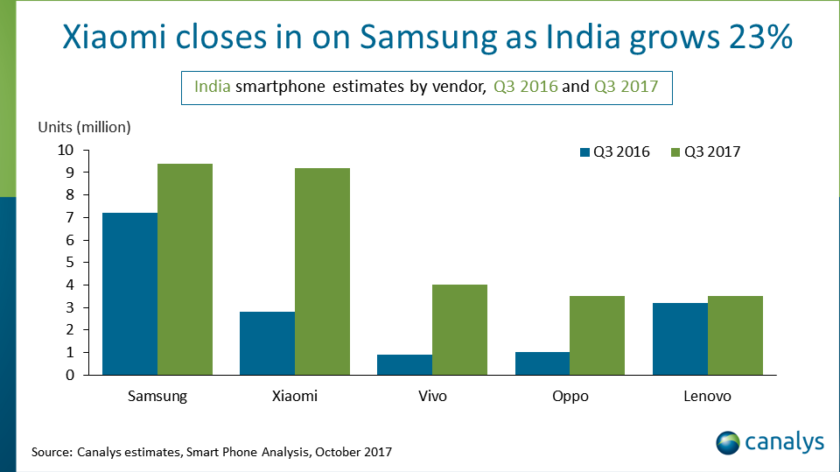 brand- Samsung and Xiaomi- are responsible for half of the total smartphone