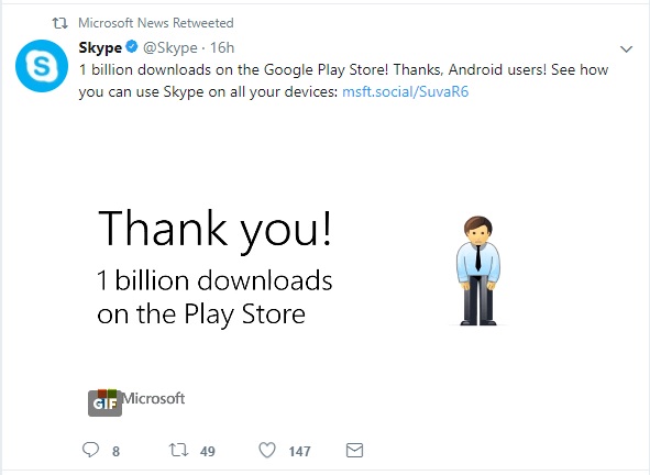 using, announced today via it twitter handle that it has reached a monumental 1billion downloads on Android devices alone.